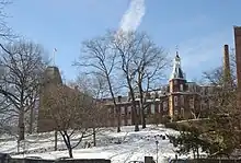 Both Boynton and Washburn died before the opening of the college on November 11, 1868. On that day, Charles O. Thompson, the first president of the Institute stood before WPI's first two buildings named Boynton Hall and Washburn Shops in honor of their respective donors, with their distinctive towers that even then symbolized the institution's two educational objectives of theory and practice, and inaugurated the Worcester County Free Institute of Industrial Science.[7][8]