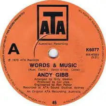 "Words and Music" is the first single released by Andy Gibb, reaching number 78 in Australia and number 29 in New Zealand.