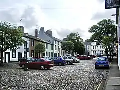 A plan to build a 92,900 sq ft (8,630 m2) Tesco Extra store on the Cloffocks provoked controversy and opposition from local people; a planning application was placed in 2006 by Tesco, after it acquired the Cloffocks site for £18 million;[21] Tesco had been competing with Asda for the site since 2003.[22][23] Campaigners opposed the sale, stating that the land was common ground and belonged to the people of Workington.[24] In 2010 the Countess of Lonsdale invoked her rights to mine the land, in an attempt to prevent the development.[25] In 2011 a closed meeting of Allerdale councillors discussed the sale of the site,[26] but the council rescinded on its decision to sell it to Tesco in June 2011. Tesco stated that it was still seeking a site for a store of around 60,000 sq ft (5,600 m2) Workington to replace the established one.[27]