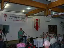 The World Association of Belarusians "Baćkaŭščyna" (Belarusian pronunciation: [ˈbatsʲkau̯ʂtʂɨna], lit. "Fatherland") (Belarusian: Згуртаваньне Беларусаў Сьвету "Бацькаўшчына") is an international organisation uniting people of Belarusian descent globally.[1] Currently 135 organisations of the Belarusian diaspora from 28 countries are members of Baćkaŭščyna.