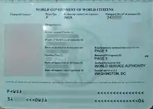 According to the WSA, the version of the document introduced in 2007 was filed as a Machine Readable Travel Document (MRTD) with the International Civil Aviation Organization (ICAO).[8] However, ICAO documents on MRTDs cite the World Service Authority and its World Passport as an example of "Fantasy Documents".[9][10]