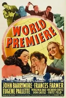 World Premiere is a 1941 American comedy film directed by Ted Tetzlaff and written by Earl Felton. The film stars John Barrymore, Frances Farmer, Eugene Pallette, Virginia Dale, Ricardo Cortez, Sig Ruman and Don Castle. The film was released on August 21, 1941, by Paramount Pictures.[1][2] Otis Garrett was originally scheduled to direct the film but had to pull out due to undergoing major surgery.[3]