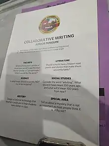 Each Regional Round consists of four main events: the Scholar's Challenge, Collaborative Writing, The Team Debate, and the Scholar's Bowl.[4] In addition to these four events, non-competitive activities take place in select tournaments. These activities are both social and academic. The academic activities each require knowledge of a curriculum made at the start of each season, which is divided into a section about history, social studies, art and music, literature and media, science and technology, and a special area.
