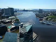 ![]() The Baltimore World Trade Center as seen from a boat in the Baltimore Inner Harbor. | |