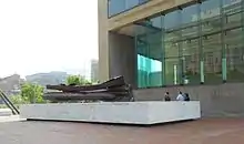 A memorial to the victims of the September 11, 2001 attacks, built on the pedestrian promenade of the Baltimore World Trade Center between the building and Pratt Street, was dedicated on September 11, 2011, the tenth anniversary of the attacks. The memorial structure includes three 22-foot long steel beams from the New York World Trade Center, which were part of the 94th to 96th floors of the north tower. Twisted and fused together, the steel beams and damaged limestone pieces from the Pentagon's west wall rest atop marble blocks bearing the names and birthdays of the 68 Marylanders who died in the 9/11 terrorist attacks. Windows on the top floor of the Baltimore World Trade Center are marked with all of the names of the September 11 attack victims.[11][12][13][14]