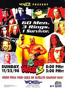 - "WCW/nWo World War 3 1998 « Events Database « CAGEMATCH - The Internet Wrestling Database". www.cagematch.net. Retrieved 2019-11-22.