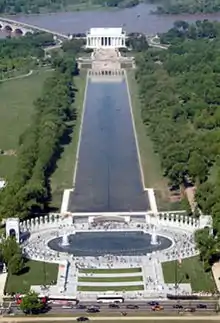 Critics such as the National Coalition to Save Our Mall opposed the location of the memorial. A major criticism of the location was that it would interrupt what had been an unbroken view between the Washington Monument and the Lincoln Memorial. The memorial was also criticized for taking up open space that had been historically used for major demonstrations and protests.[23][24][25]