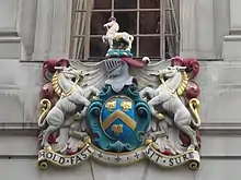 The Company ranks twenty-fifth in the order of precedence of Livery Companies (as settled in 1515 on the Companies' economic or political power at that time). Unusually, the Saddlers Company has two mottoes: Hold Fast, Sit Sure and Our Trust Is In God. The coat of arms seen on the entrance of Saddlers' Hall, showcasing a parlfrey, two horses, a bascinet and the moto, is continued to be used in the Company's communications.[1]
