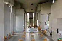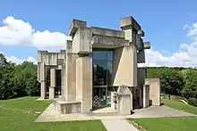 The Kirche Zur Heiligsten Dreifaltigkeit (English: Church of the Most Holy Trinity) in Vienna, better known as the Wotruba Church, is located on the Sankt Georgenberg in Mauer (corner of Rysergasse and Georgsgasse) in Liesing, the 23rd District of Vienna. It was built between August 1974 and October 1976 on the basis of a model by Fritz Wotruba.