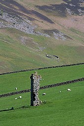 Wrae Tower is a ruined 16th-century stone tower house, located in the upper Tweed Valley in the Scottish Borders area of Scotland, and similarly south of the village of Broughton. The ruin is at grid reference NT115332, 3 km south-west of Drumelzier. Only a fragment of the north-east corner stair tower, around 9m high and 4m across, remains standing. A single jamb represents the north-west ground floor entrance to the tower and crowning the north-east wall is rough corbelling, which supports the remains of a parapet. The tower was probably built by the Tweedies of Drumelzier, who owned the surrounding lands since 1320.