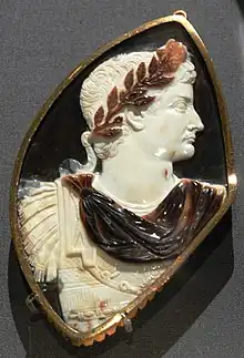 Crowns became essential parts of the regalia of the Roman emperors during the Roman imperial period.[21] The laurel wreaths of a triumphator were often worn by imperial portraits, as were radiate crowns.[21]