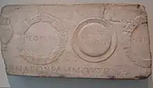 Besides sacrificial rituals, festival rites of marriage, birth, and death all involved wreaths.[1] As in Catullus's Poem 61 and Apuleius's The Golden Ass, couples to be married were both wreathed on the occasion.[1][8][9] To mark the occasion of a new birth, the household would hang a wreath of olive or wool on the door.[1] As part of ancient funerary practice, the death were wreathed, funerary urns were wreathed, and wreaths were lain on and within tombs. Euripides's The Trojan Women, Athenaeus's Deipnosophistae, and Pliny's Natural History all include references to the dead as wreathed, while Pliny even mentions a raven, celebrated talking as a talking bird, being awarded wreaths at its lavish funeral.[1][10][11][12] Funerary monuments might be painted with wreaths as well as hung with them, and from the Hellenistic period, wreaths awarded to the deceased during a lifetime could be carved on the monument marking the grave.[1]
