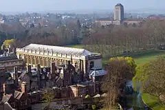 The Wren Library (foreground) and University Library (background) viewed from the chapel tower at St John's College