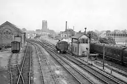 The goods depot and marshalling yard were used until 7 December 1964,[8] after which they were reduced to a large car park and railway club. The station and goods yard had a 56-lever signal box, which was used until 19 August 1973.[8]