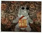 As proof of authenticity, all Wrinkles toys have a bone-shaped symbol embroidered into their ear. As well, they all came with a fabric bone. The plush Wrinkles spawned some additional merchandise, including metal dinner trays,[2] PVC figures, poseable dolls and even a direct to video movie featuring child actress Ami Foster.[3]