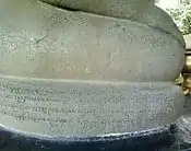 The Wurare Inscription, in Indonesian Prasasti Wurare, is an inscription commemorating the coronation of the statue Mahaksobhya in a place called Wurare. The inscription is written in Sanskrit, dated November 21, 1289 CE.[1] The statue is a tribute and a symbol for Kertanegara, king of Singhasari kingdom, which was considered by his descendants to have achieved the degree of Jina (Great Buddha). The inscriptions are written circulary on the pedestal base of the Buddha statue.