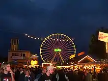 The Wurstmarkt (literally: Sausage market) in the spa town of Bad Dürkheim, in Rhineland-Palatinate, Germany is the world's biggest wine festival with over 600,000 visitors each year.[1] It is held annually on the second and third weekend of September. The first Wurstmarkt - under a different name - was held in the year 1417. It takes place in the middle of the town, outside the Giant Cask (Dürkheimer Riesenfass) - the largest wine barrel in the world, which also houses a restaurant. The festival is reminiscent of the common Weihnachtsmarkt, with fairground rides and many food stalls being temporarily installed for the event. They eat all kinds of sausages at the “Wurstmarkt” including Bratwurst.