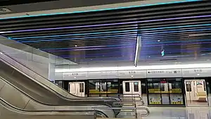 Wuzhong Road (simplified Chinese: 吴中路; traditional Chinese: 吳中路; pinyin: Wúzhōng Lù) is a metro station on the Line 15 of the Shanghai Metro. Located south of the intersection of Guilin Road and Wuzhong Road in Minhang District, Shanghai, the station was scheduled to open with the rest of Line 15 by the end of 2020.[1] However, the station eventually opened on 23 January 2021 following a one-month postponement.[2] The station is located in between Yaohong Road to the north and Guilin Road to the south. This is the Only Station on Line 15 where there are lights in the ceiling and the sign is white instead of black.