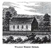 The Wyandot Mission Church, located on East Church Street in the Old Mission Cemetery, is the first officially recognized mission of the Methodist Episcopal Church in America. Many of the Wyandot people from the Grand Reservation worshipped there until the U.S. Government ordered their relocation to Kansas in 1843.[3][4]