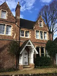 Old Lodge - No. 52 Banbury Road lies immediately south of No. 54, at the junction with Norham Gardens, and was designed by Frederick Codd in 1868.[22][23] It initially housed the Holy Rood Convent (an Anglo-Catholic nunnery of the Society of the Most Holy Trinity, which was involved in printing the works of John Henry Newman). The hall acquired No. 52 when the sisters sold up in 1883. This second villa initially functioned as the principal's residence, but in 1930 was converted to contain both student and staff common rooms on the ground floor – hence 'Old' Lodge. In 1974 the hall's library was moved from South Wing into Old Lodge, where it remains to this day.
