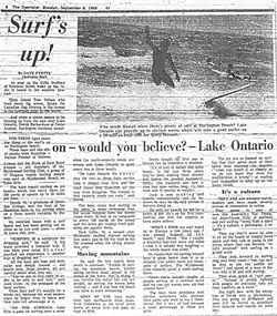 - "Surfers trade boards for garbage bags and gloves". Niagara Falls Review. June 18, 2013.