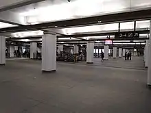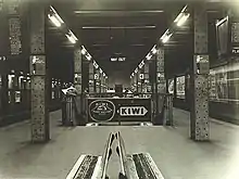 The station opened on 28 February 1932.[3] Wynyard was originally constructed with six platforms (the existing four platforms are still numbered from 3 to 6), with platforms 1-4 located on the upper level and platforms 5 and 6 on the lower level. The original intention was that Platforms 1 and 2, located adjacent to platforms 3 and 4, would eventually serve the eastern pair of railway tracks across the Harbour Bridge for a proposed railway line to the Northern Beaches. In the interim, with construction yet to begin on the Northern Beaches line due to lack of funds, they were used as a terminus for North Shore tram services on Sydney's tram network, a service that operated over those tracks from the bridge's opening in 1932 until 1958. A feature of these lines was Australia's only underground tram terminus.[1] On 22 January 1956, the lines from platforms 5 and 6 were extended to Circular Quay as part of the City Circle.[1]