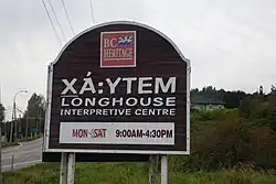![]() Sign for the X̱á:ytem Longhouse Interpretive Centre | |