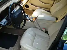 Early cars used a two-spoke steering wheel that was later changed for a four-spoke airbag-equipped wheel. The glovebox was removed on later cars because of the space occupied when the passenger-side airbag was introduced. Some XJ40s bound for the United States were fitted with automatic seat belts.