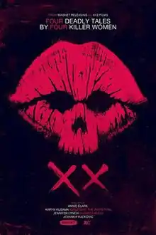 XX is a 2017 American anthology horror film directed by Jovanka Vuckovic, Annie Clark, Roxanne Benjamin and Karyn Kusama. It stars Natalie Brown, Melanie Lynskey, Breeda Wool and Christina Kirk. It had its world premiere at the Sundance Film Festival on January 22, 2017, and was released in a limited release and through video on demand by Magnet Releasing on February 17, 2017.