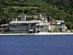 In the 6th century, there was a small Christian community dedicated to Saint Dimitrios on the current site of Xenophontos Monastery. There, the chapel of Saint Dimitrios, which still survives today, was built by Saint Xenophon the Senator (d. 6th century).[1]