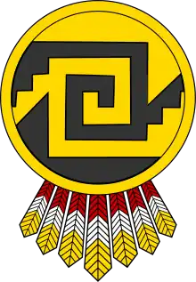 Xicalcoliuhqui (also referred to as a "step fret" or "stepped fret" design and greca in Spanish) is a common motif in Mesoamerican art.[1][2][3][4] It is composed of three or more steps connected to a hook or spiral, reminiscent of a "greek-key" meander.[5] Pre-Columbian examples may be found on everything from jewelry, masks, ceramics, sculpture, textiles and featherwork to painted murals, codices and architectural elements of buildings.[6][7][8] The motif has been in continual use from the pre-Columbian era to the present.[2][9]