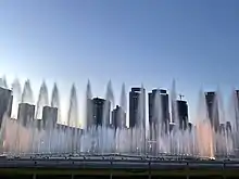The fountain has a diameter of 140 meters and a maximum spray height of 88 meters. It adopts 8 patented technologies and presents a shocking performance of "sound, light, electricity, and fire".[10]