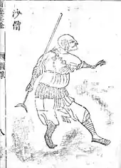 - The third, appearing in chapter 22, is the river ogre Sha Wujing (literally "Sand Awakened to Purity"), also known as Friar Sand or Sandy. He was previously the celestial Curtain Lifting General, and was banished to the mortal realm for dropping (and shattering) a crystal goblet of the Queen Mother of the West. He is a quiet but generally dependable and hard-working character, who serves as the straight foil to the comic relief of Sun and Zhu. In the story, Sha Wujing is an allegorical representation of human obedience.