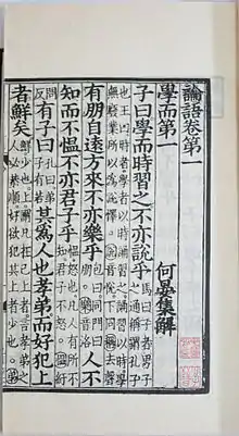 Xué Ér (學而) is the first book of the Analects of Confucius. According to Zhu Xi, a Confucian philosopher in the 12th century, the book Xue Er is the base of moral improvement because it touches upon the basic principles of being a "gentleman" (jūnzǐ, 君子).[1]