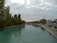 Karşıyaka: Settled in the late 19th century, Karşıyaka is the first expansion of Adana to the east bank of Seyhan River. It is bordered by D400 state road on the north, Seyhan river on the west and Yüreğir Canal on the east. Traditionally an Arabic area, Karşıyaka has seen mass migration of Kurds during the 1990s. Yüreğir District Hall, Adana State Hospital and Asri Cemetery are located in this zone. 14 neighborhoods of this zone are:Cumhuriyet, Yamaçlı, Seyhan, Haydaroğlu, Bahçelievler, Akdeniz, Güneşli, Anadolu, Dede Korkut, Yunus Emre, 19 Mayıs, Yeşilbağlar, Koza and Başak.