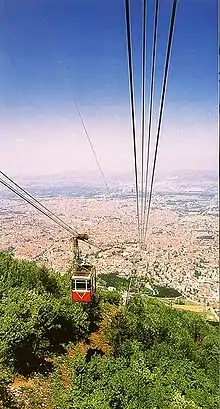 The Bursa Uludağ Aerial Lift (Turkish: Teleferik, pictured to the right) is an aerial lift serving Mt. Uludağ. Built by the Swiss company Von Roll Holding and opened on 29 October 1963, the aerial tramway was replaced in 2013 by a modern and much bigger capacity gondola lift system by Leitner Group of Italy.[3]