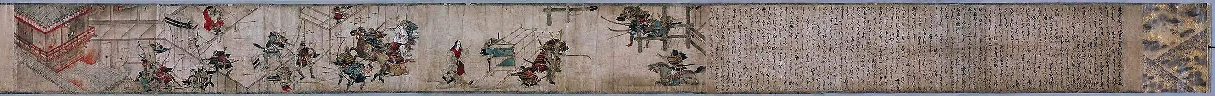 The Yūki Kassen Ekotoba (結城合戦絵詞) is a 15th-century scroll containing both text and illustrations describing Ashikaga Mochiuji's seppuku and Yūki Ujitomo's rebellion against shōgun Ashikaga Yoshinori (the Yūki Kassen). It is 28.80 cm long, 378.20 cm wide. The scroll is an Important Cultural Property.