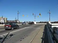 The current concrete and steel bridge, a multi-way bridge, is the fifth in the series on the same location. It opened in 1984. While being a relief to traffic and the citizens, it has received criticism for a tunnel-like effect due to its solid railings, providing hardly any view of the scenery.[2]