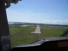 There is an instrument landing system servicing Runway 19, on the frequency 111.3 MHz.[20] Kingston also has a non-directional beacon (NDB) that transmits "YGK" in Morse code on the longwave radio frequency of 263 kHz.[21]