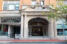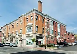 The Salem YMCA is a historic YMCA building at 284-296 Essex Street in the Downtown Salem District in Salem, Massachusetts. Its large building is an anchor of the western end of Salem's business district, of which Essex Street is a major component, and is one of the finest Classical Revival buildings in Salem. The Salem YMCA was first organized in 1858, and it commissioned the construction of this building in 1898. The three story brick and limestone building was designed by Walter J. Paine, and has retained most of its exterior styling. The ground floor was designed to house primarily retail establishments, with the YMCA entrance highlighted by an ornate entablature supported by twin columns on either side. Entrances to the retail establishments are also indicated by building bays that project out less prominently than the main entrance. The ground floor is built in limestone, while the upper floors are predominantly brick. The building originally had a loggia on top of the roof, but that was removed in the 1950s.[2]