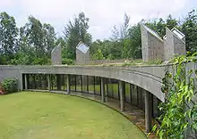 The complex was designed by Pune-based Master Architect Prof.Christopher Charles Benninger.[1] His team included architects Deepak Guggari and Harsh Manrao.[2] This organic complex was completed in 2003 and has won national awards, including the 2006 Indian Institute of Architects (IIA) Award for the best Public Building of the year because of its sustainable environment and unique relationship to the landscape.
