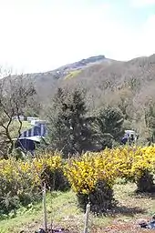 Plas yn Rhiw is a grade II* listed early 17th-century manor house, which contains a stone spiral staircase. The house is believed to be on or near the site of an earlier defended house, built by Meirion Goch in the 10th century to prevent incursions by Vikings into Porth Neigwl.[8] It was remodelled in 1820, when a third storey was built; a stair-wing added to the rear; and the front redesigned with a Georgian façade and 16 pane sash windows, above a ground floor verandah. The house was restored by the Keating sisters in 1939, with advice from Clough Williams-Ellis (who designed and built Portmeiron village), and is now owned by the National Trust. The garden lies below the house and is terraced into the slope, divided by hedges into several small compartments;[4] there are views over Porth Neigwl and Cardigan Bay, and in spring and summer there are displays of snowdrops and bluebells.[9] It is the only organic National Trust garden in Wales.[10]