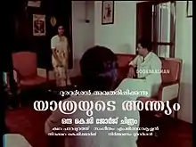 Yaathrayude Anthyam is a 1989 Malayalam-language television film co-written and directed by K. G. George for Doordarshan.[1][2] The film stars Murali as a reputed writer. The film depicts his intellectual and emotional relationship with an intellectual (M.G. Soman) who leads the life of a simple farmer in a remote village, and his worries about his widowed daughter (Annamma Abraham) who has a five-year-old girl child.The story is entirely based on these relationships. The story unfolds through the writer's bus journey to visit him. This film was never released in theaters. The film is based on the short story, "Kottayam Manathavadi", by Parappurath.