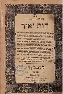Rabbi Yair Chayim Bacharach (1639, Lipník nad Bečvou, Moravia — 1702; also known by his work Chavos Yair or Chavot Yair) was a German rabbi and major 17th century posek, who lived first in Koblenz and then the remainder of his life in Worms and Mainz. His grandmother Eva Bacharach was a granddaughter of the Maharal of Prague, and his father Moses Samson Bacharach, and grandfather had served as rabbis of Worms.