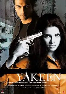 Yakeen (Translation: Trust) is a 2005 Indian Hindi language romantic mystery thriller film directed by Girish Dhamija, starring Arjun Rampal, Priyanka Chopra in the lead roles while Kim Sharma, Sudhanshu Pandey and Saurabh Shukla are featured in supporting roles. The film's screenplay was written by Vikram Bhatt.[1] The film's plot is loosely inspired by the 1991 Hollywood film Shattered.[2] The film's premise centres on a man who recovers from an accident with amnesia, and as he starts to piece together his former life he feels that something is wrong.[3]