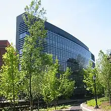 2005 | Cesar Pelli | This triangular building was funded in part by John C. Malone and built with a limestone veneer and a glass curtain wall. Malone contains laboratories for research and teaching. The building fronts the Farmington Canal[26] |