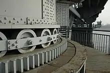 ![]() The former swing span at the south end of the bridge's surviving portion | |