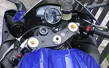 The R1 was also equipped with a 41 mm KYB upside-down front fork and 300 mm semi-floating disc brakes. The instrument panel was electronic, with a self diagnosis system and digital speed readout. The exhaust used Yamaha's Exhaust Ultimate Power Valve (EXUP) system,[5] which controlled exhaust gas flow to maximize engine power production at all revs, resulting in a high-power and high-torque engine.