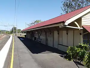 The North Coast line through the area was completed in 1891.[2] However a station office building wasn't operational until a while later. The station today consists of one platform with a wooden structure. Opposite the platform lies a passing loop and a Queensland Rail engineering depot.