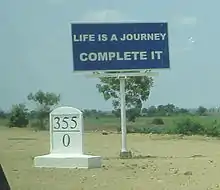 The Yangon–Mandalay Expressway (Burmese: ရန်ကုန်–မန္တလေး အမြန်လမ်း) is a tolled expressway in Myanmar (Burma) that connects the country's largest city Yangon and second largest city Mandalay. Opened in December 2010, the 587 km (365 mi) expressway has reduced the travel time between Yangon and Mandalay to 7 hours from 13 hours by train and from 16 hours by the old highway.[1][2][3][4] The highway, which does not meet international design, construction and safety standards has seen a spate of accidents since its opening.[5][6][7]